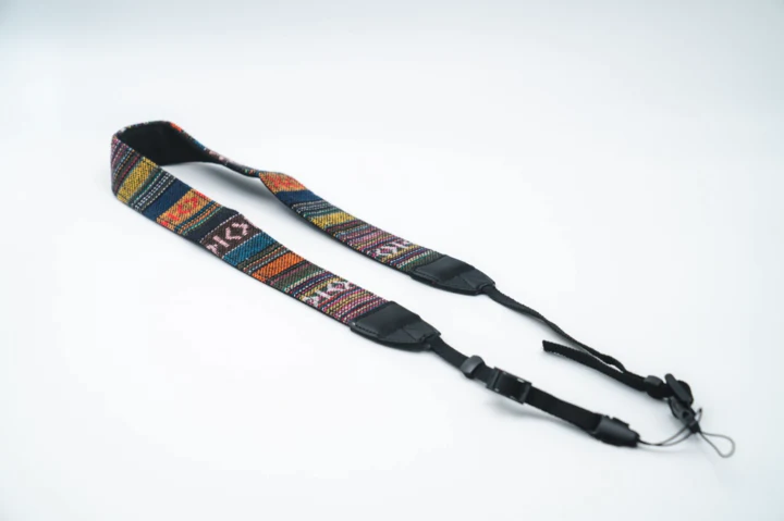 Core Features Comfy and stylish cotton woven tapestry outer layer Durable and strong polyester base layer Over shoulder or around the neck Includes detachable camera loops...