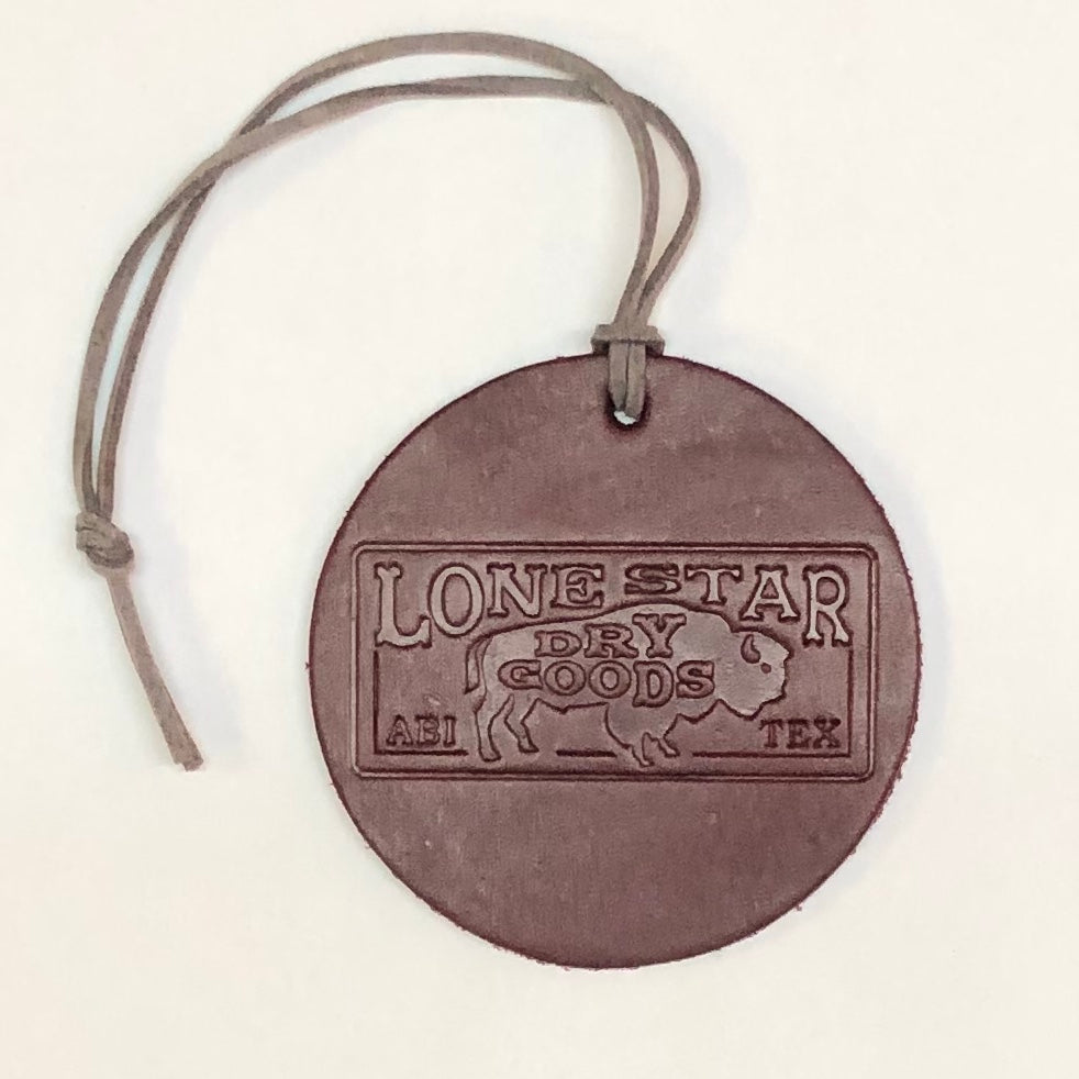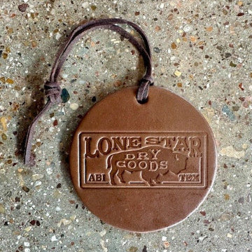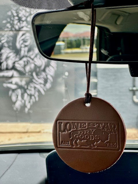 Leather scented car air freshener. Handmade in Texas by Callahan Leatherpress.