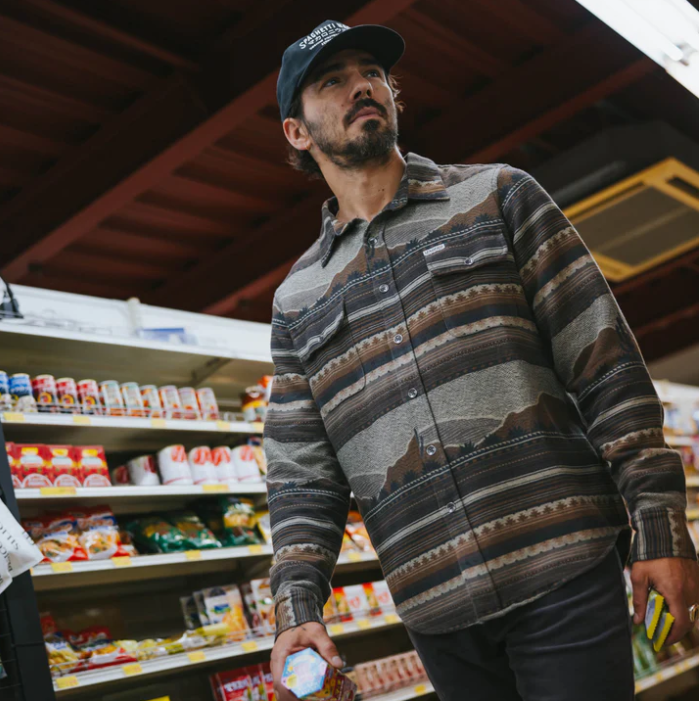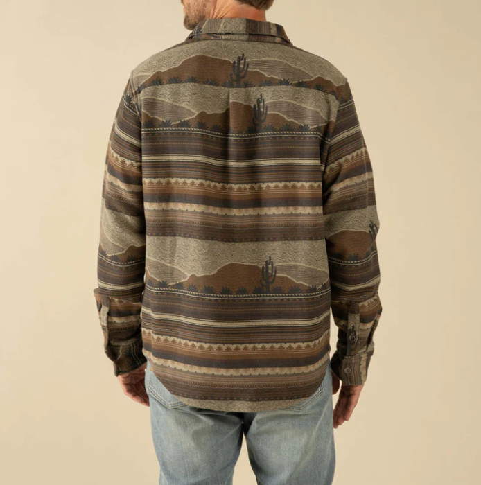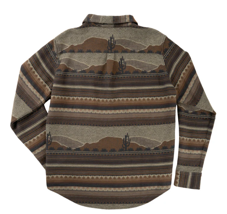 Our Boquillas Shirt is designed off the patterns and vibes of vintage textiles found across the Southwest. This shirt can be layered in the cool weather, worn on its own, or used as a blanket in the odd emergency situation where you need a southwestern rug. Ok not really, it's too soft and slick to be trampled on.