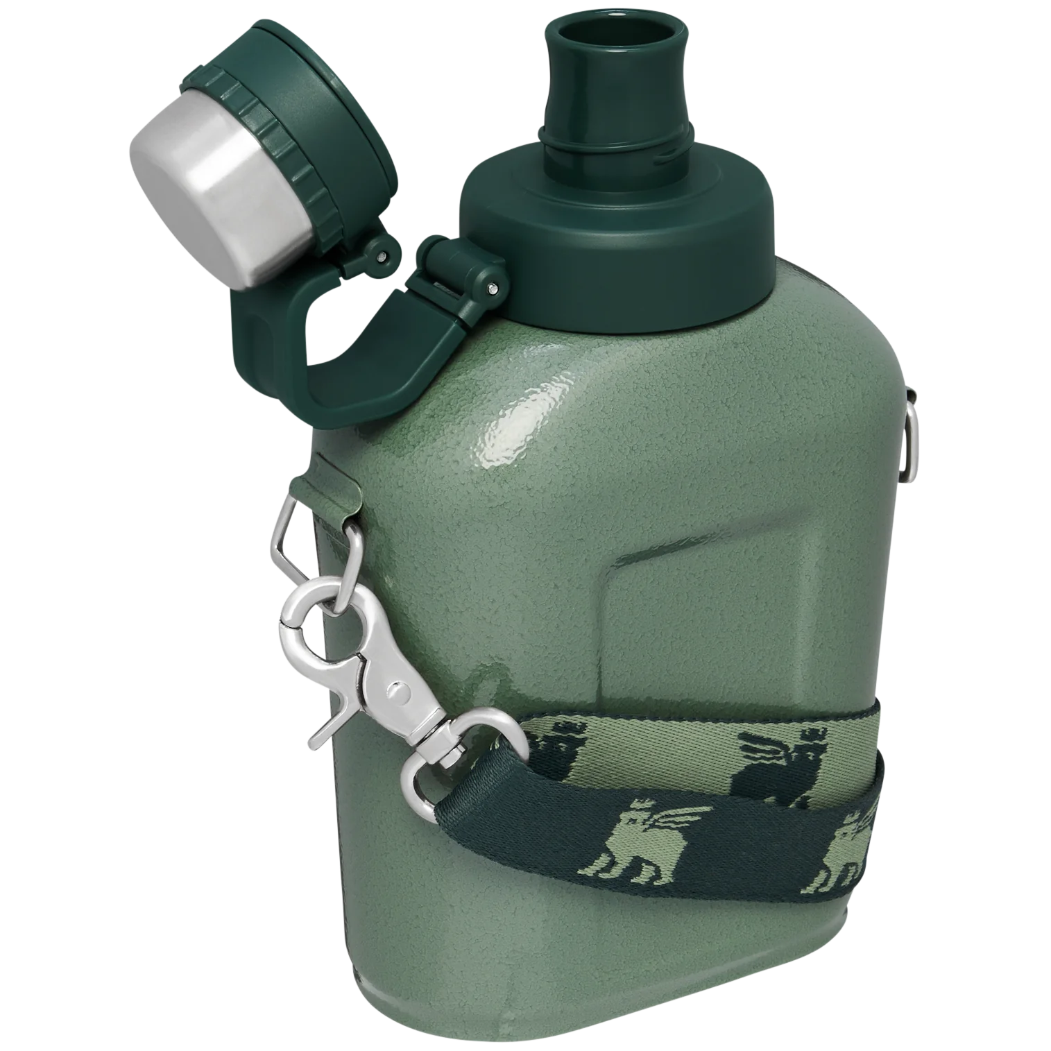 The Stanley Canteen is back and ready for your next urban hike or glamping getaway. Fill it with a quart of your favorite beverage – this non-insulated stainless steel Canteen sheds a layer of steel to let you pack more sips into a compact lightweight bottle. It holds enough water for a day on the go when staying hot or cold is not a concern, and is the perfect size to slide in your backpack or carry-on. Sling it over your shoulder – this one keeps you hands-free until you need it, thanks to the removeable carry strap featuring our iconic winged bear. The cap is attached so it will never go missing, and with iconic colors to choose from you'll be on-trend but never thirsty.