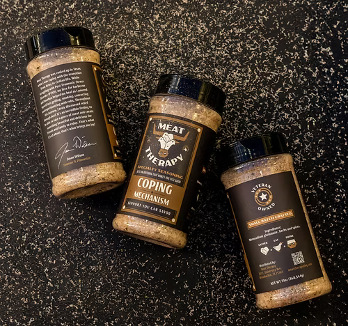 Meat Therapy was cooked up in Texas while I was coping with the transition from Army to civilian life. While struggling with Pos Traumatic Stress Disorder (PTSD), my love for barbecue and bourbon helped me heal as I poured myself into grilling, smoking, concocting and experimenting with rubs. Throughout this journey, I truly discovered relief through beef. It's an incredible feeling to be able to take a piece of meat and create something beautiful and delicious for friends and family to enjoy. That's what it's all about, that's what brings me joy!