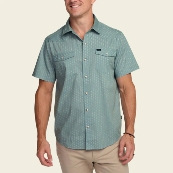 Our H Bar B Snapshirt is one of our most popular releases every season because of its glorious pearl snaps and timeless good looks. It is THE new classic pearl snap shortsleeve. We twist it up each season in our very own vintage inspired prints and plaids with our HB original sunglass cleaning microfiber at the hem. There’s a whole stampede of imitators out there trying to get in the pasture with their own version of this shirt. Choose your horse wisely and make sure it’s branded H Bar B.