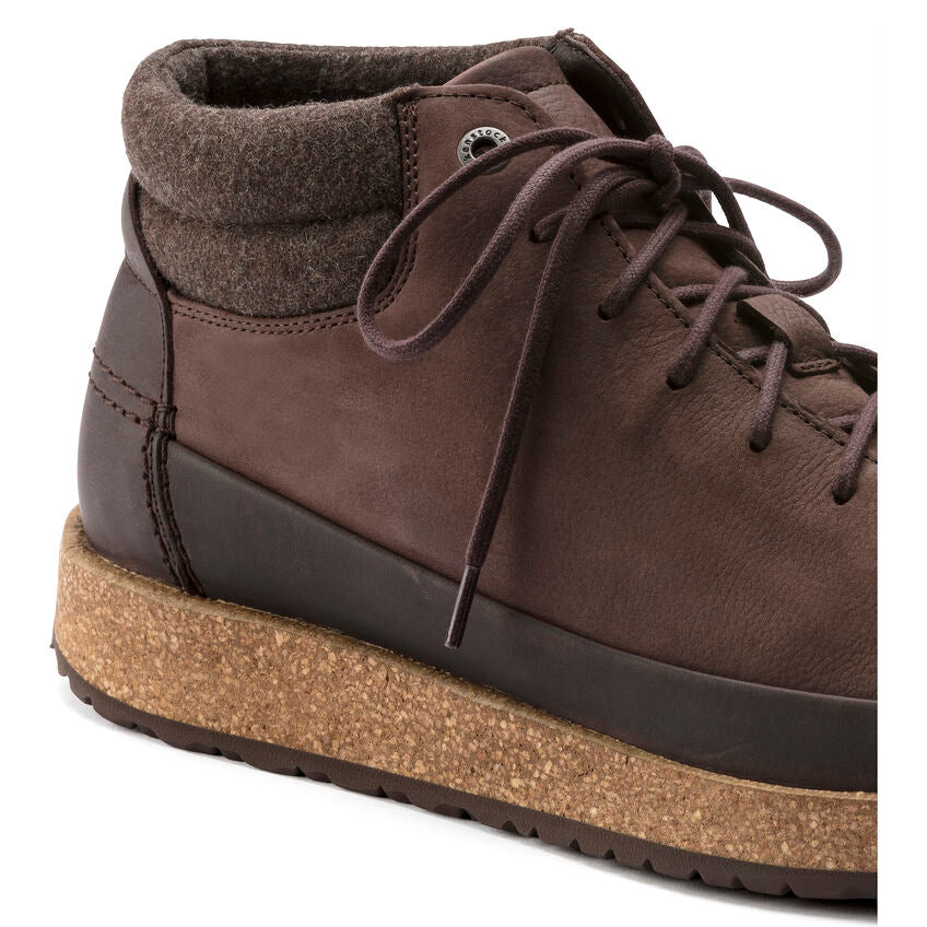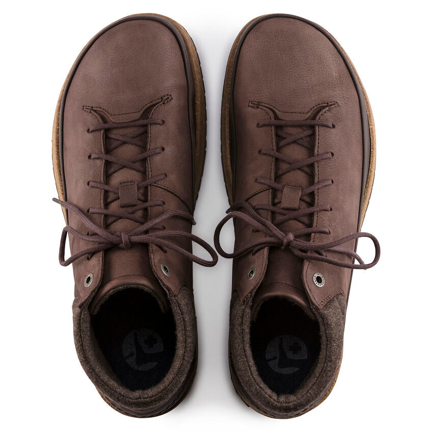 Presenting the BIRKENSTOCK Honnef High - our newest street smart ankle boot engineered completely around our new Deep Blue footbed. The four part footbed includes a moisture wicking microfiber liner, cork and jute layers for optimum arch support and a PU base for added shock absorption and forefoot cushioning. The sporty lace up style is perfect for your most active days, whether that’s all day around town or on your next travel adventure, The oiled nubuck upper is durable and easy to clean, fully adjustable lacing for optimum fit, wool synthetic lining for internal temperature control and injected rubber outsole for added grip and durability.- Original BIRKENSTOCK Deep Blue Footbed; anatomically shaped and removable