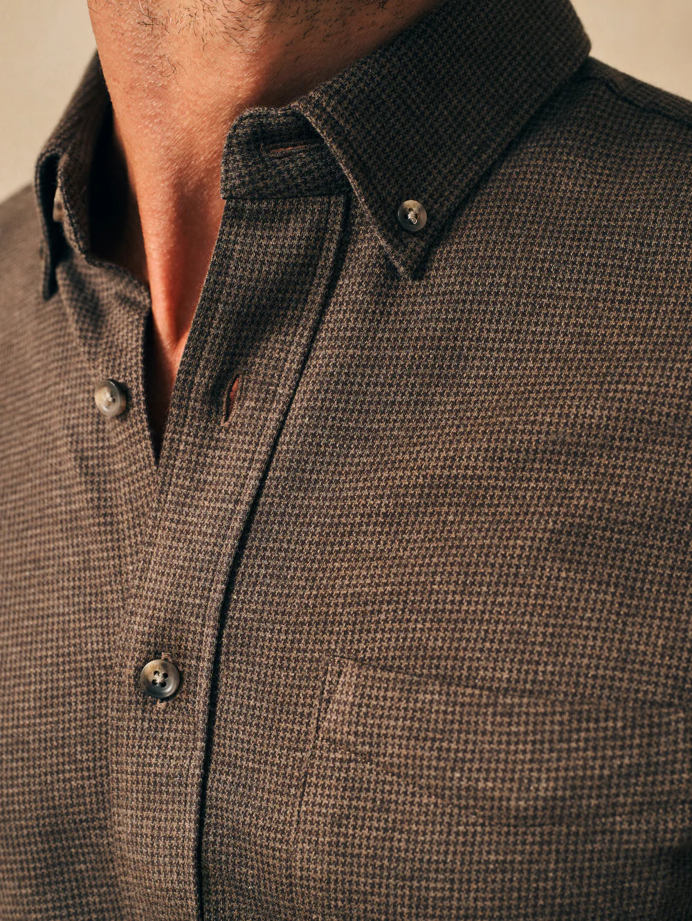 We took the classic look of a woven button-down shirt but made it infinitely more laid back in a softer-than-soft knit fabric sourced from Portugal. In a handsome houndstooth print, we especially love it for cozy weekends and looking festive (but relaxed) at holiday parties.