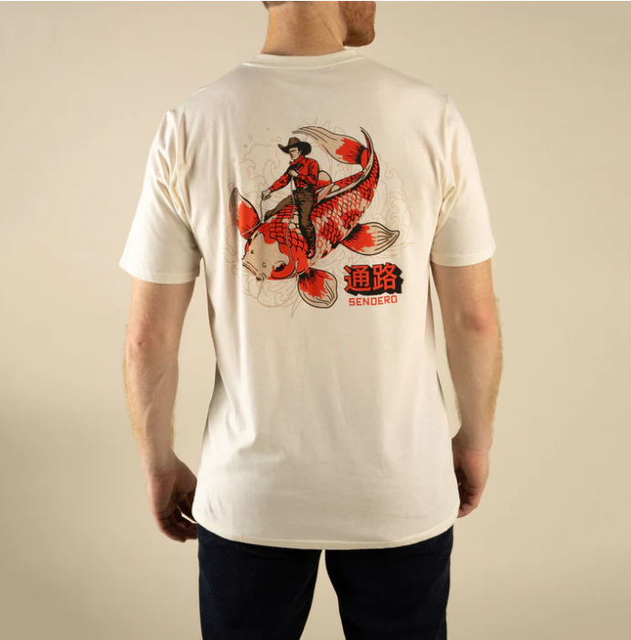 This cowboy went west seeking the toughest ride known to man. He conquered every bull he could find and kept goin’. The big orange whiskered fellah was a different sorta beast. And that cowboy knew he was in for it when they started headin’ up the hundred foot waterfall. Some folks say they made it to the top and found eternal bliss. Others say they were lost forever. Either way, it musta been one heckuva ride.