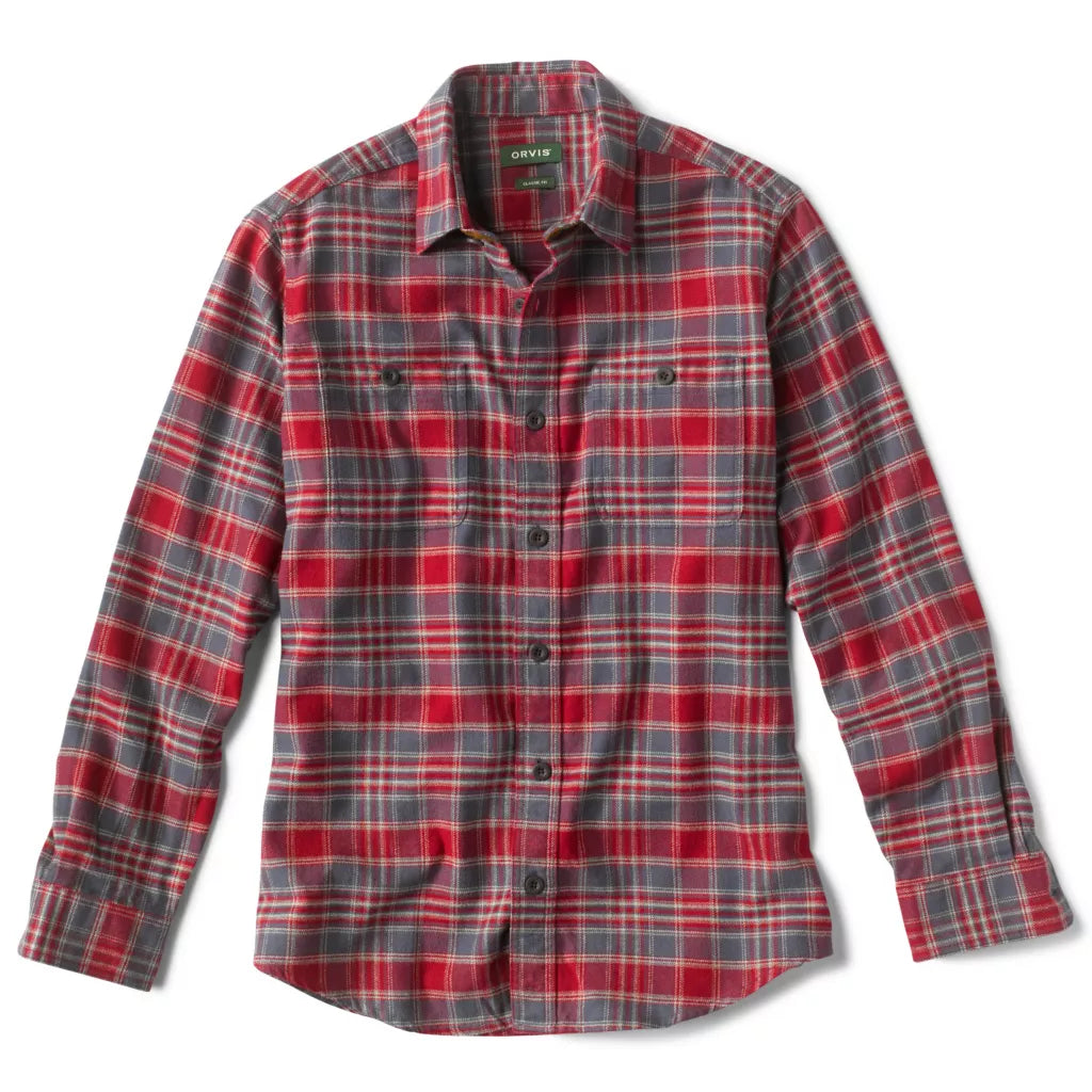 The plaid fabric in these Perfect shirts is the softest flannel you will ever find, thick and brushed on both sides for maximum softness and comfort. Long-sleeved shirt with button-through patch pockets. Distinctive washable faux-suede trim on the outside neckband, bound buttonholes at the pockets, and locker loop. Long shirttail hem stays tucked in. Spread collar, two-button adjustable cuffs. Classic fit.