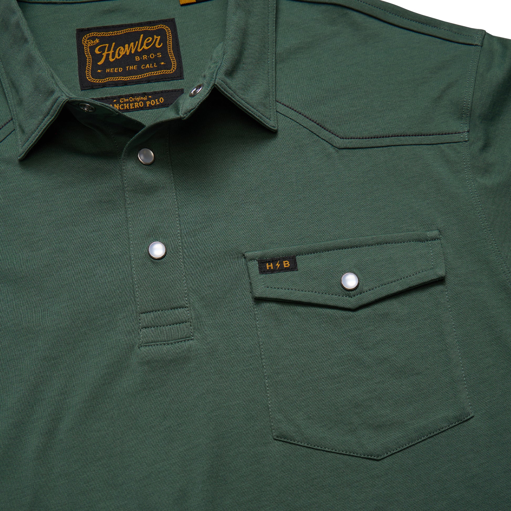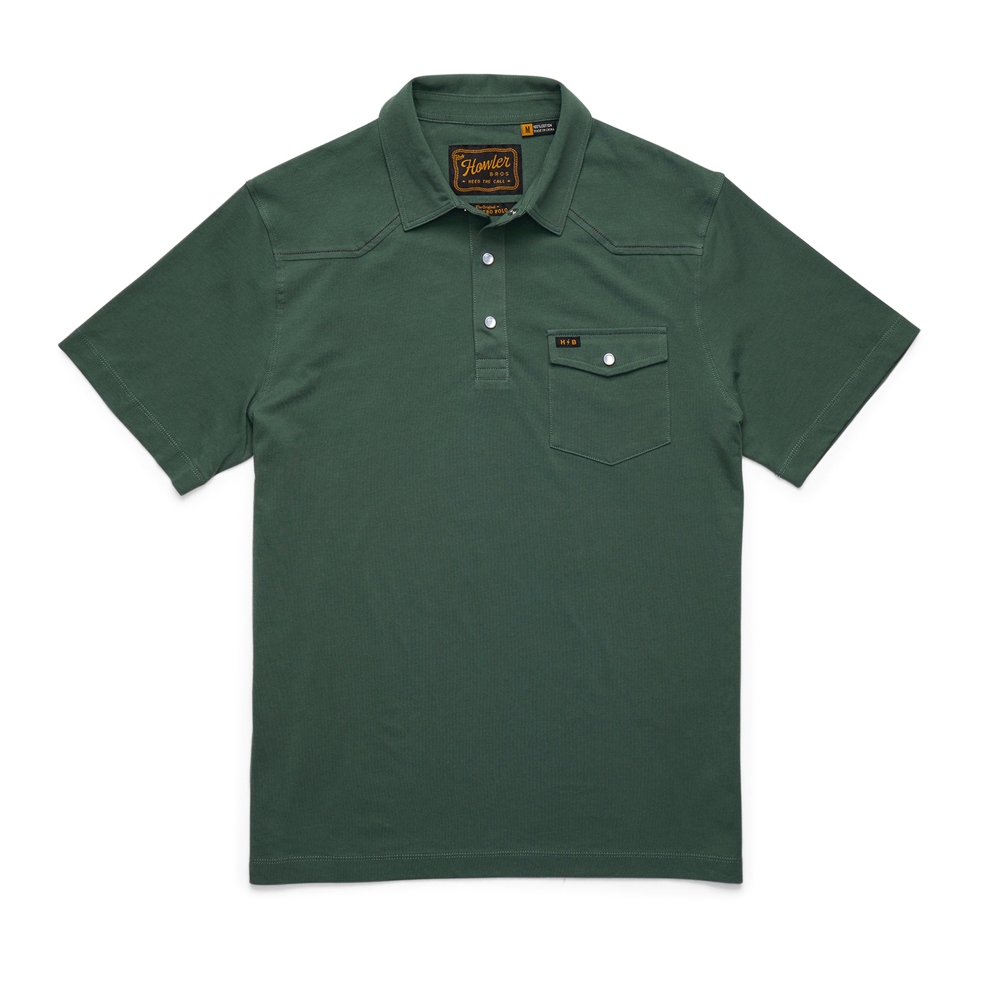 The Ranchero Polo has all the versatility of your favorite staple polo but is a major style upgrade with its cool single pocket design, pearl snaps and subtle western style yoke. Made of super soft 100% heathered cotton you have come to expect from Howler with a straight hem for untucked wear. One of the best sellers in our Austin retail stores every season.