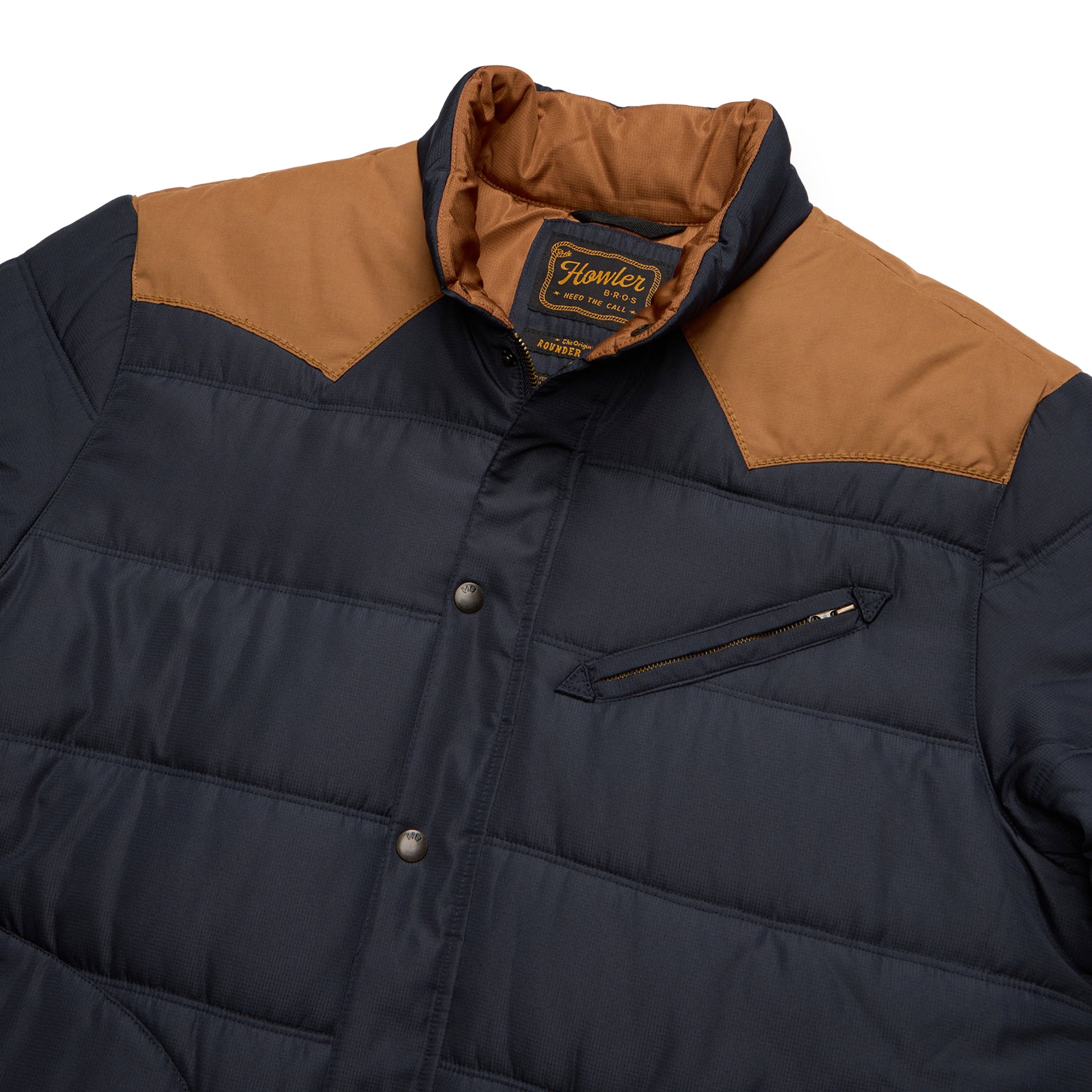 Meet the newest and warmest member of our famous Rounder family. Like its vest brethren, the new Rounder Quilted Jacket is a cold fighting machine that pairs western details with PrimaLoft® Black Rise insulation. Subtle details like the angled chest pocket and chain stitch embroidery make this the puffy you need for those colder days.