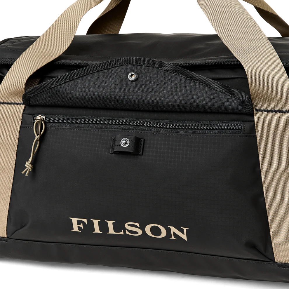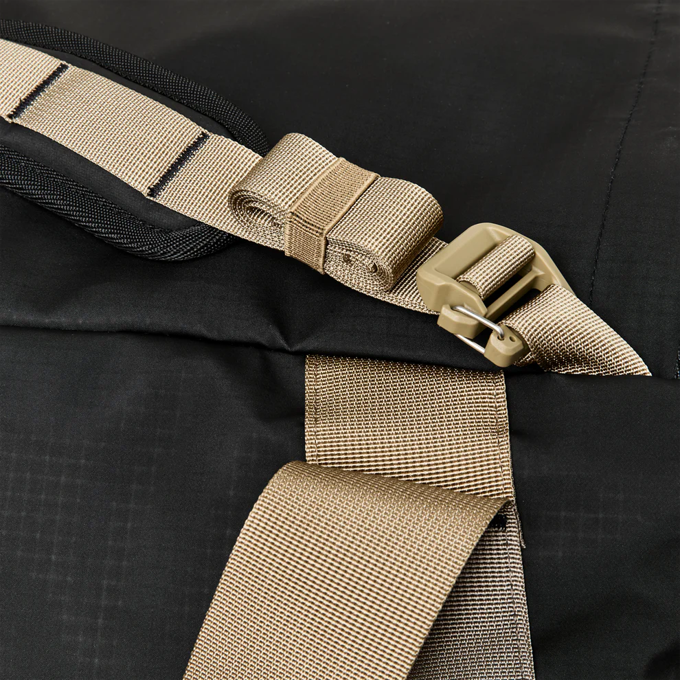Sized for multi-day excursions, our new Scout Duffle is built to protect gear through any weather. It's made with 100% recycled polyester fabrics treated with thermoplastic polyurethane (TPU) to prevent water entry. The main material is 300D ripstop, and the bottom boot 600D Oxford matte for added durability.