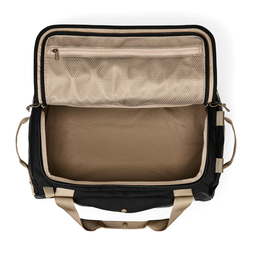 Padded, contoured shoulder straps with an adjustable sternum strap enable hands-free carry. They are removable to prevent snagging during transport. The full length of the main compartment's U-shaped zipper is covered by an extended storm guard for added water protection. The endcap grab handles and main carry handles are made from strong, durable nylon webbing. An interior zip-close hanging pocket and exterior snap-flapped pocket keep small essentials organized, and the entire top opening panel is covered with a zippered mesh pocket.