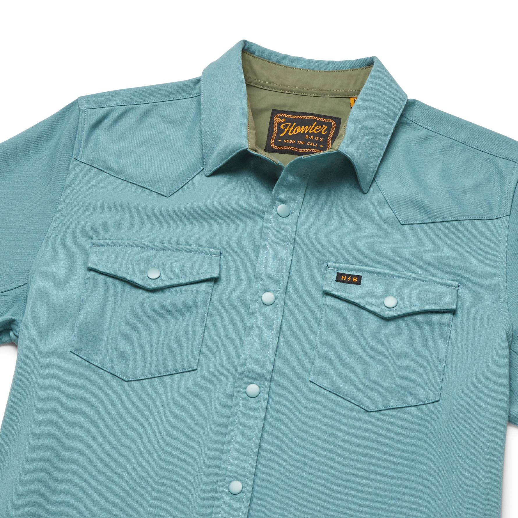The Stockman Stretch Snapshirt is a western inspired snapshirt constructed of a stretchy poly-rayon-spandex brushed flannel fabric that will help you rope and wrestle anything in sight. Throw in the super cool colored snap buttons for a bit of Howler vibe and our original sunglass cleaning microfiber at the hem and you’re ready for every ride.