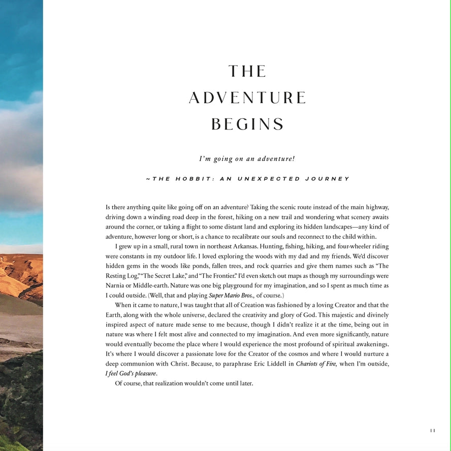 Divided into five parts that are each devoted to a unique aspect of nature—oceans, forests, rivers, ice, and mountains—Proctor encourages readers to recognize how being outside restores us and offers us a renewed sense of awe and wonder for the Creator. In each of the thirty brief essays, he points to some of the deep lessons nature can teach us. We can appreciate the gift of silence while observing a glacier, gain a new perspective on top of a mountain, learn the skill of slowing down from a river, and experience a metaphor of redemptive life after death through nurse logs. Each part includes an interview from an artist whose inspiration has been drawn from nature and ends with a “Time to Fly!” section that features reflection questions, simple action prompts, and sources for further exploration. Whether outdoor enthusiasts or armchair adventurers, readers of this book will be drawn into a more holistic and contemplative way of life and a deeper awareness of the beautiful world around them.